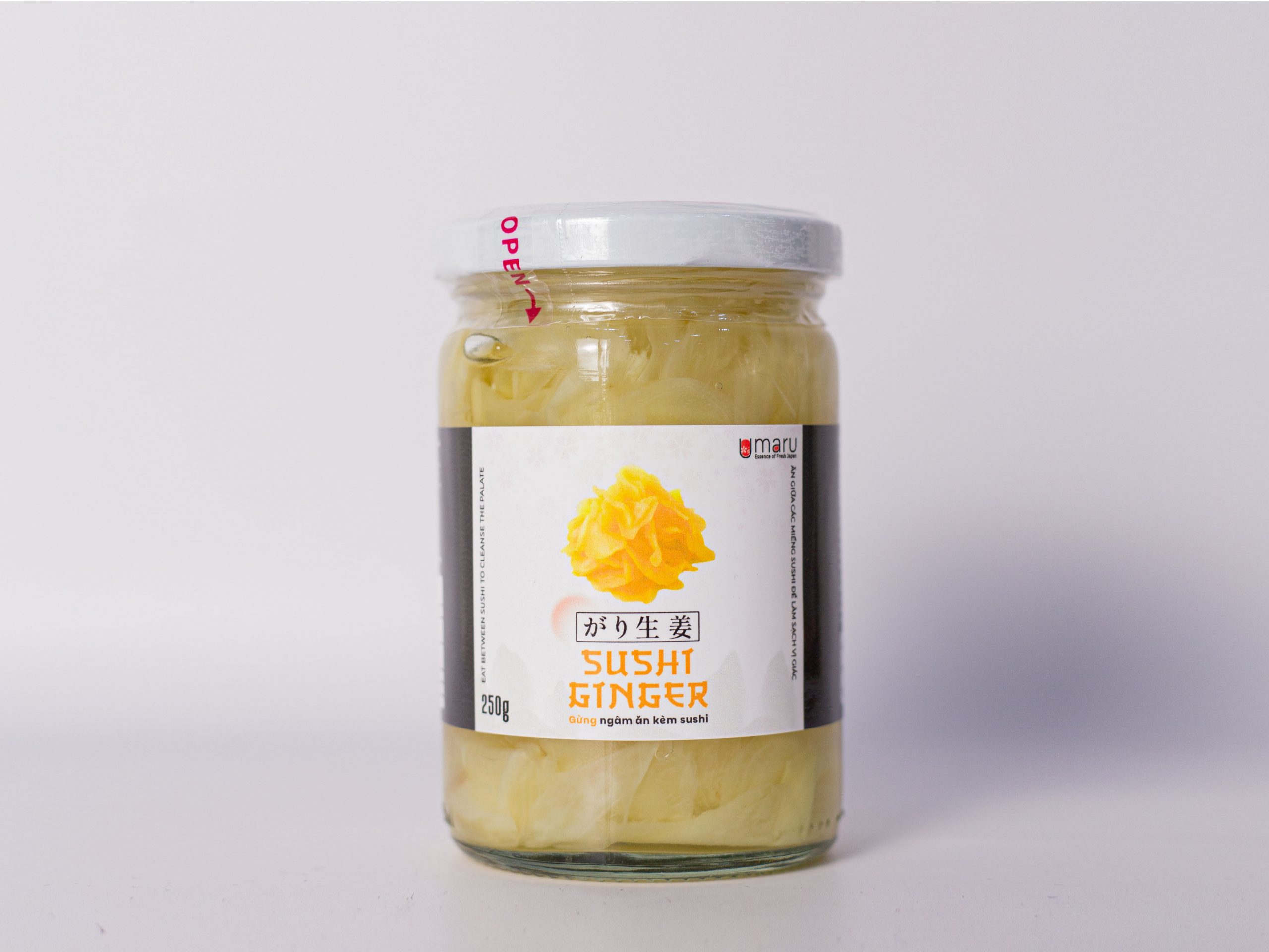Sushi Ginger White 250g is made from finely sliced ginger cut to 1.0mm, offering a crisp bite and a refreshing palate-cleansing effect. The ginger is seasoned with a balanced blend of sweetness, acidity, and saltiness, making it an excellent accompaniment to sushi, sashimi, seafood, and a variety of Japanese-style dishes. Its consistent texture and dependable quality make it suitable for restaurants, sushi bars, retail packs, and home kitchens, all conveniently packaged in a 250g glass jar.